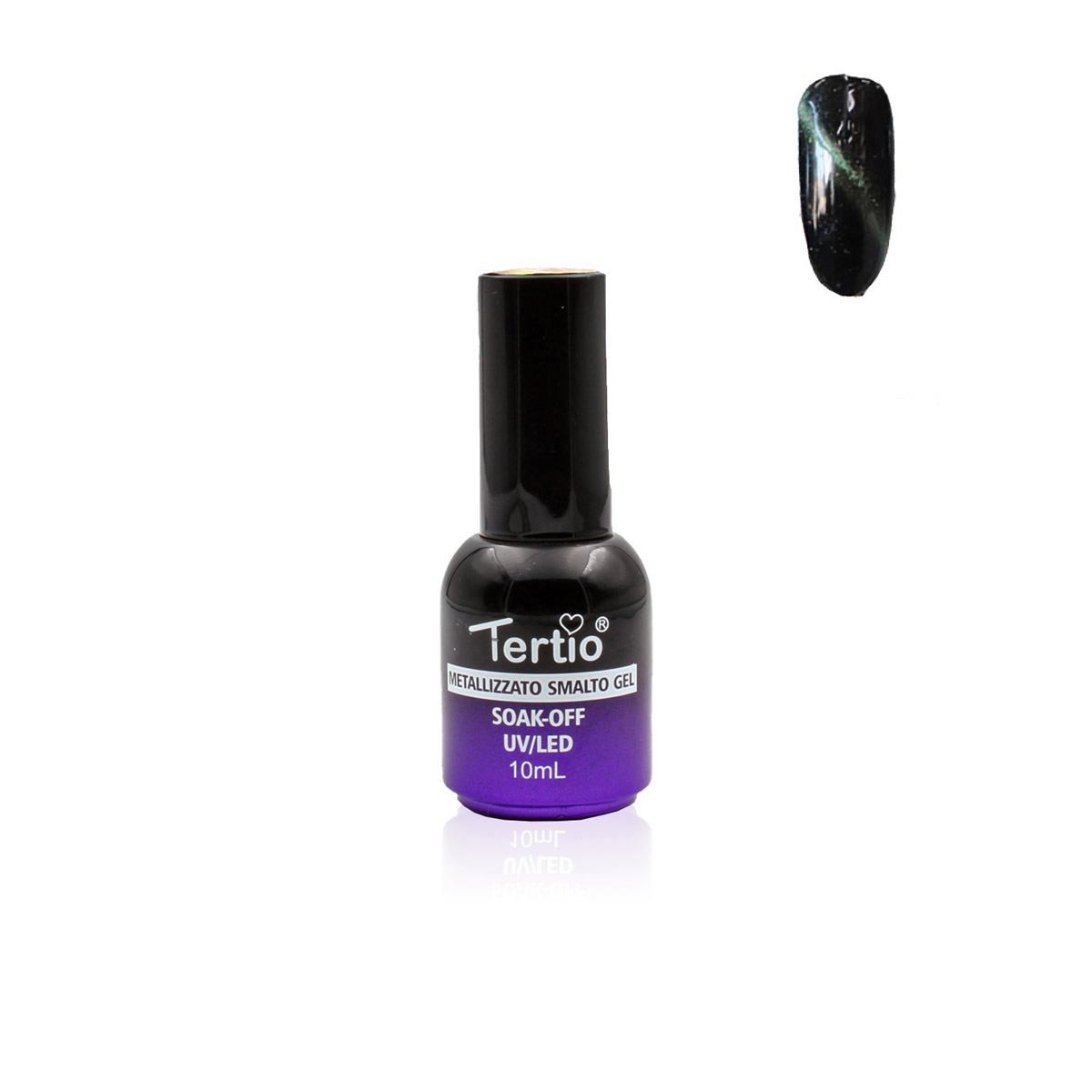 • Applica uno strato uniforme di gel o smalto magnetico “Cat Eyes”. Non polimerizzare immediatamente. Mantieni il magnete sopra l’unghia a una distanza di 3-5 mm per circa 10-15 secondi. La linea magnetica apparirà sull’unghia, creando l’effetto “occhio di gatto”. Assicurati di non toccare l’unghia con il magnete.