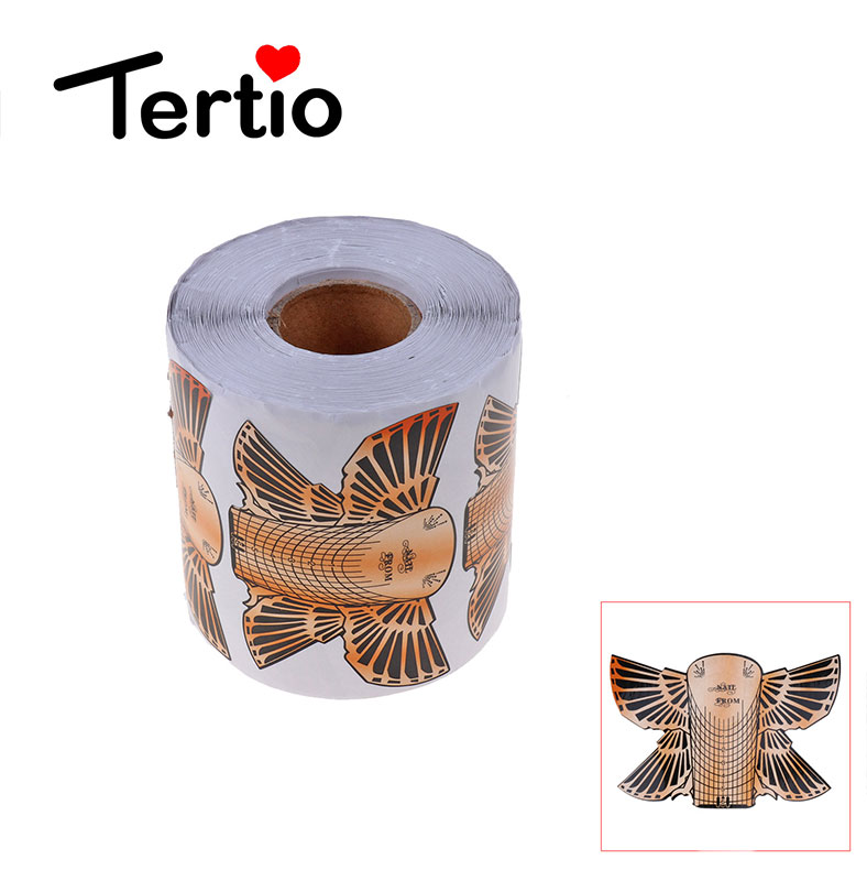Rotolo 500 sagome cartine per allungamento ricostruzione unghie. Colla a tenuta strong, cartina spessa resistente e facilmente modellabile. Staccare la forma desiderata a posizionare sopra l’unghia, aderire bene i bordi della forma agli estremi e procedere. Si staccher? facilmente dopo la ricostruzione.